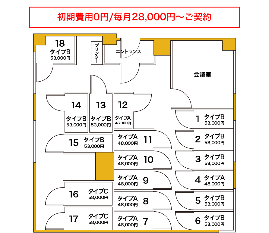 - その2オープニング価格として月額28,000円(税込30,800円)〜/月で個室をご提供いたします。